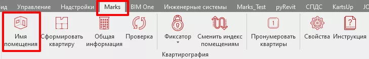 5. Заполните параметр «Имя» помещения плагином «Квартирография». Путь: MARKS-АР/Имя помещения (см. Рис. 17).