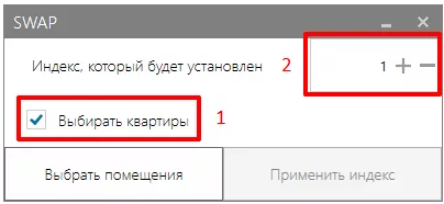 Если были выбраны какие-либо помещения у интерфейса SWAP разморозится команда «Применить индекс», по нажатии которой заполнятся соответствующие параметры помещений, и кнопка снова станет неактивной до следующих выбранных помещений, а индекс для следующих помещений автоматически увеличится на единицу.