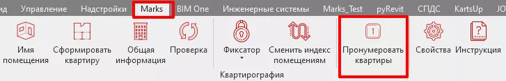 10. Пронумеруйте квартиры используя плагин «Квартирография». Путь: MARKS-АР/Пронумеровать квартиры (см. Рис. 35).