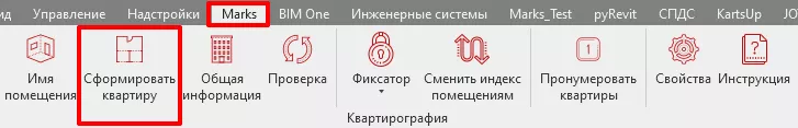 6. Сформируйте квартиры/апартаменты плагином «Квартирография». Путь: MARKS-АР/Сформировать квартиру (см. Рис. 22, Рис. 23). Примечание: использовать данный пункт только для квартир и апартаментов. Для МОП, Коммерция и т.д. этот пункт не применять.