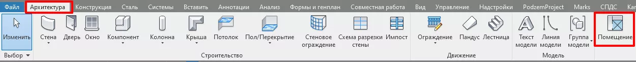 1. Расставьте помещения инструментом «Помещение». Путь: Архитектура/Помещение (см. Рис. 1).