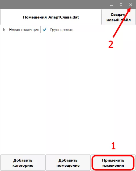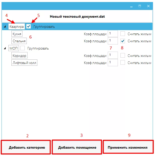 9 – После добавления/удаления/изменения наименований помещений необходимо применить изменения.
