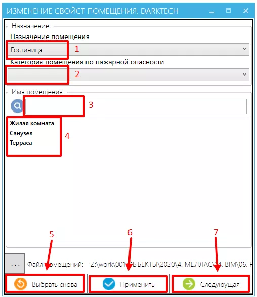 5 – Если вам необходимо выбрать снова, дополнить или изменить выбор помещений воспользуйтесь этой кнопкой.