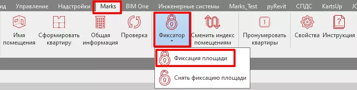 При использовании фиксатора заполняется параметр «ADSK_Фиксация площади». Для того чтобы снять фиксатор с помещения, вам необходимо в выпадающем списке фиксатора выбрать пункт «Снять фиксацию площади». Использовать только при крайней необходимости.