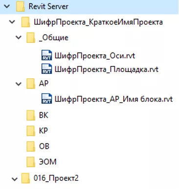 Хранение данных на Revit Server должно быть организовано по следующей структуре: