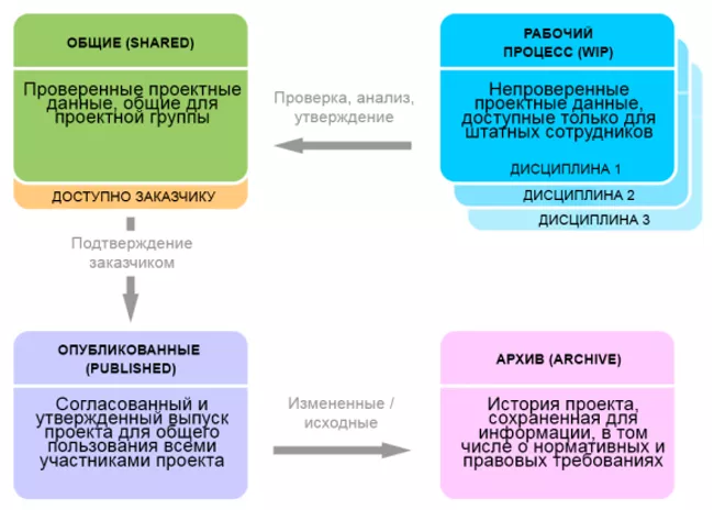 Среда общих данных включает четыре области данных, через которые последовательно проходят проектных данные:
