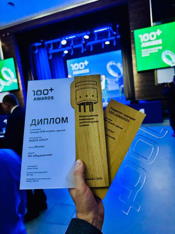 Мы стали победителями 100+ Awards в категории «Лучшая BIM-модель здания» с нашим проектом жилого комплекса «Бадаевский» девелопера Capital Group!