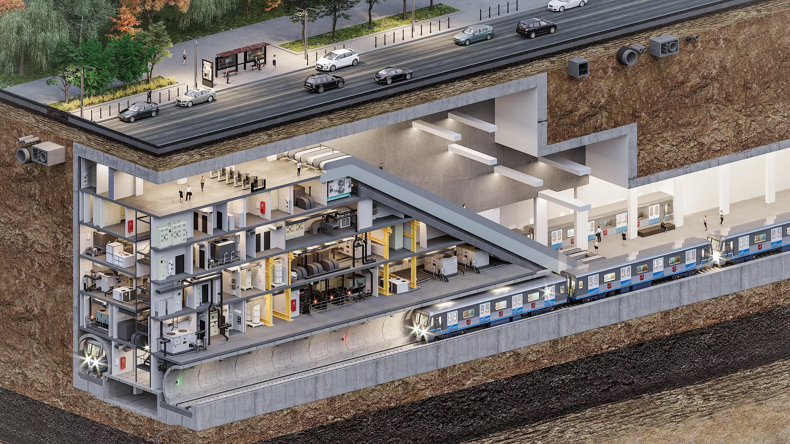 Excavation pit depth is up to 25 meters. Complex engineering and geological construction conditions, construction of the 2nd stage of the halt platform after commissioning of the 1st stage.