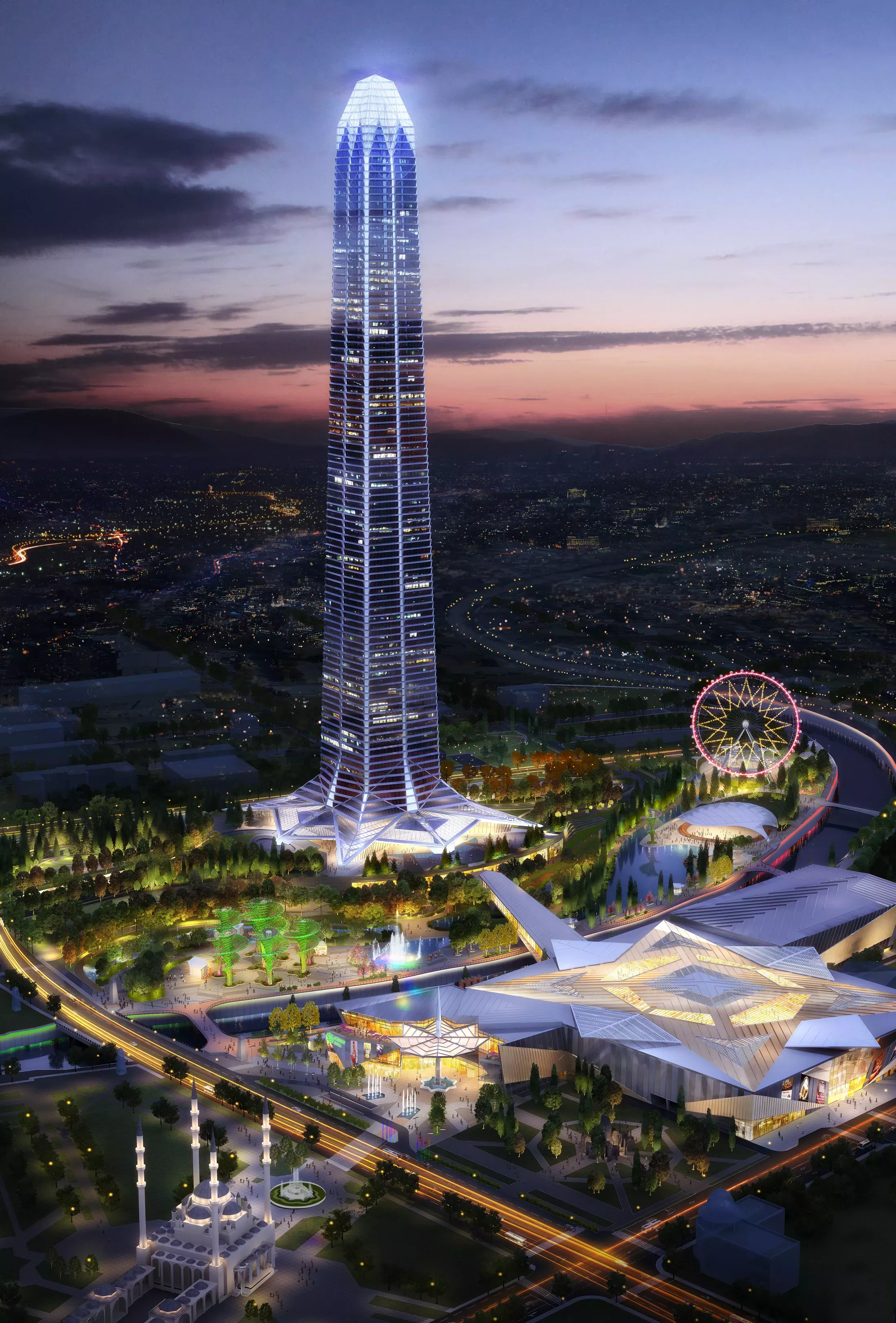 A unique building project that includes office space, shopping malls, a luxury hotel, restaurants, sports grounds and panoramic observation decks. This building is the second tallest building in the Russian Federation. The design is complicated since the building is located in earthquake-prone zone with a probable intensity up to 9 points. The design of the AKHMAT TOWER required a thorough analysis of structural stability, wind load resistance, seismic resistance and other technical aspects. The team has developed innovative solutions to ensure the safety and sustainability of the building. The high-rise building resembles the appearance of the Chechen medieval watchtowers.