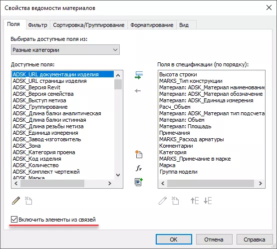 В спецификации необходимо установить галочку «Включить элементы из связей» см. Рис. 3