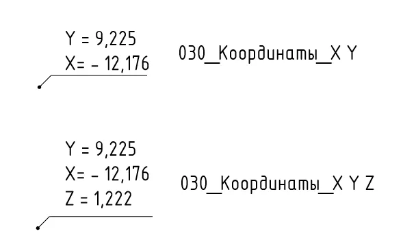 В шаблоне настроено два типоразмера обозначения координат: с указанием высоты (Z-координаты) и без [1] (см. Рисунок 40):