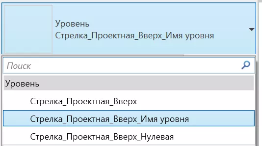 В шаблоне создано несколько типов уровней с различной информацией в отметке уровня. Каждый из типов использует различные типоразмеры семейства «003_Обозначение_ОтметкаУровня» (см. Рисунок 49).