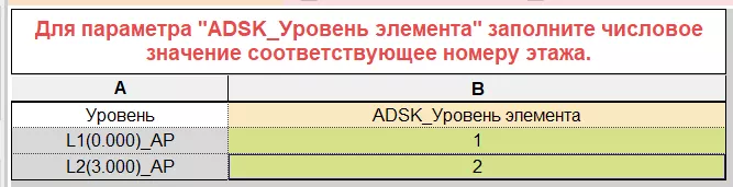 1. Заполните вспомогательную спецификацию «(В)_Двери-01_Для поэтажной» вписав значения параметра «ADSK_Уровень элемента» согласно номеру этажа на котором расположены двери (для дверей используется параметр «ADSK_Уровень элемента» поскольку он является числовым и может использоваться в условных выражениях, в отличие от текстового параметра «ADSK_Этаж») (см. Рисунок 132).