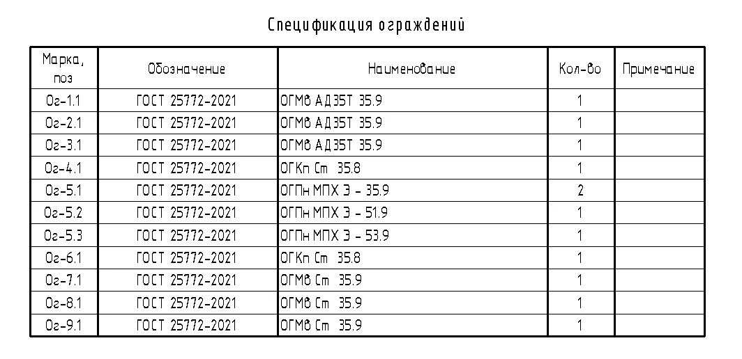 Результатом является сборная марка «Марка, поз.» в ведомости «(О)_Спецификация ограждений» позволяющая отличить ограждения разного типа, а также экземпляры ограждений одного типа, но разной длины.