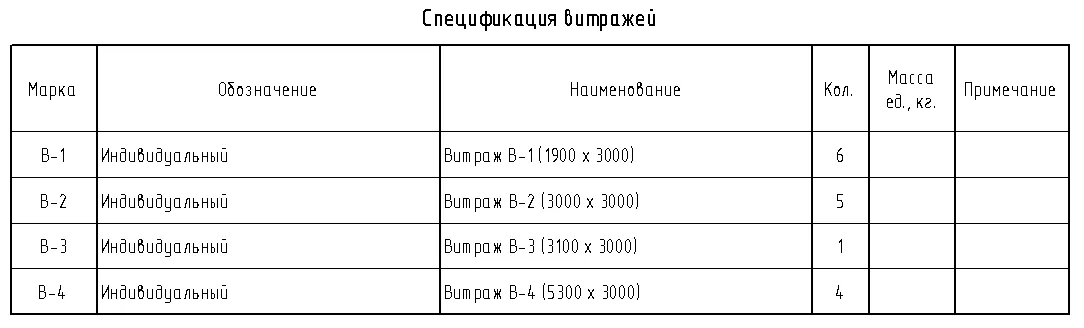 5.2.3. Витражи. Спецификация витражей