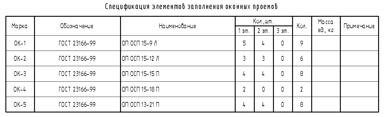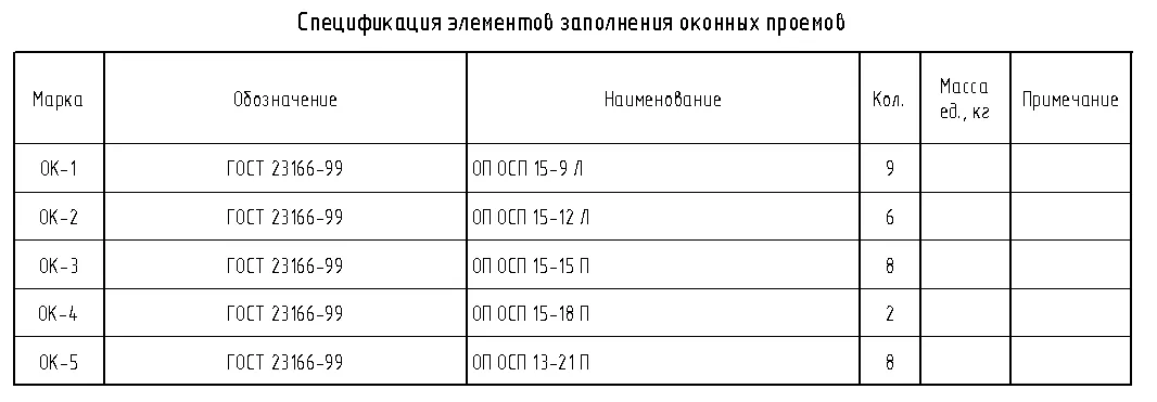 5.2.8. Окна. Подоконники. Спецификация элементов заполнения оконных проемов