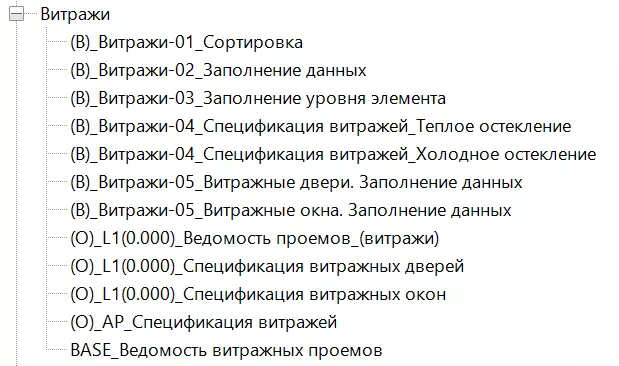 - «(В)_Витражи-04_Спецификация витражей_Холодное остекление» (см. Рисунок 125)