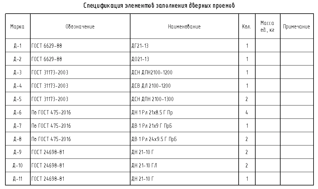 5.2.4. Двери. Спецификация элементов заполнения дверных проемов