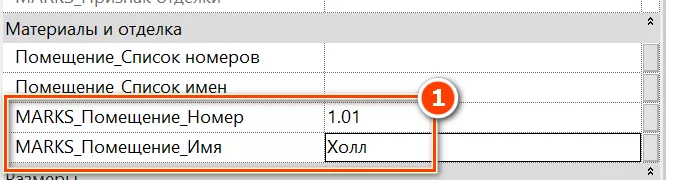 2. По контуру помещения создайте потолок. В свойствах экземпляра пола в параметре «MARKS_Помещение_Имя», пропишите имя помещения, в котором находится потолок. В параметре «MARKS_Помещение_Номер» пропишите номер помещения, в котором находится потолок [1] (см. Рисунок 167).