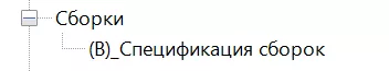 В ветке «Сборки» находится вспомогательная спецификация «(В)_Спецификация сборок» позволяющая получить данные об именовании сборок и их количестве.