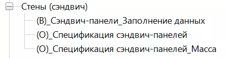 Ведомости сэндвич-панелей создаются с помощью спецификаций «(О)_АР_Спецификация сэндвич-панелей» и «(О)_АР_Спецификация сэндвич-панелей_Масса»