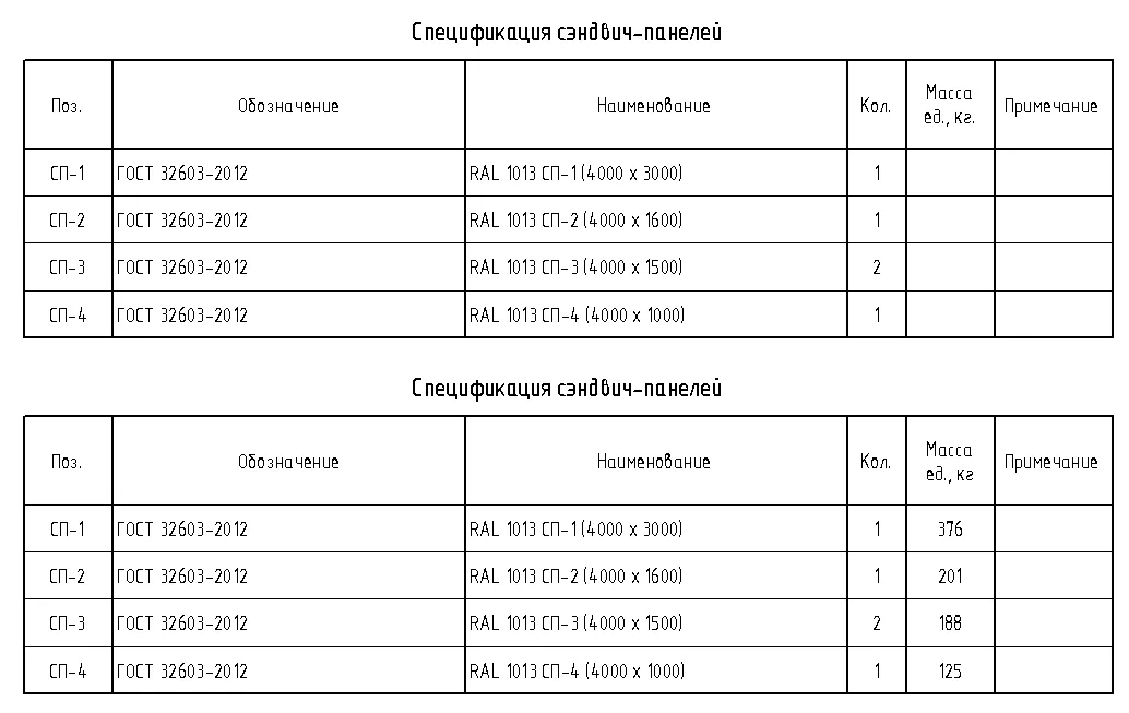 5.2.21. Спецификация сэндвич-панелей / Спецификация сэндвич-панелей_Масса