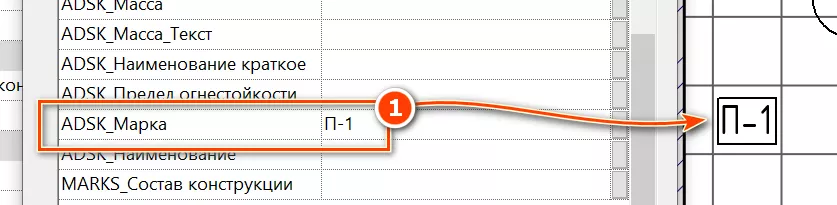 Для новых типов потолков пропишите значение параметра «ADSK_Марка». Значение этого параметра будет выведено в марке типа потолка на плане потолков (см. Рисунок 166).