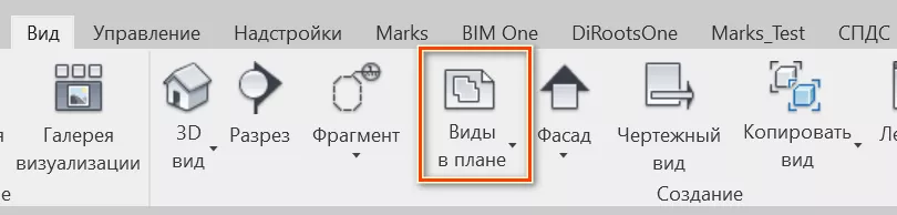Новые виды в плане создаются с помощью команды «Виды в плане» на вкладке «Вид».