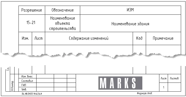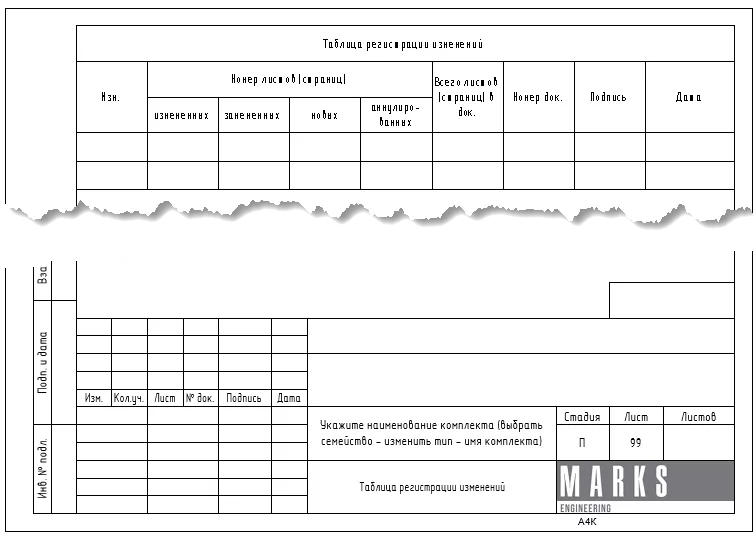 Также в шаблонах по умолчанию загружены первый, второй лист изменений, таблица регистрации изменений. Данные в 1 и 2 лист изменений вносятся при помощи инструмента Текст, Рис. 18 - Листы изменений.