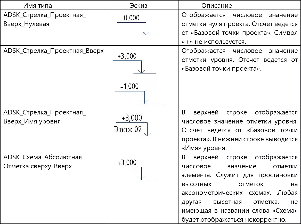В шаблонах настроены необходимые типы высотных отметок. При этом отметки можно классифицировать: