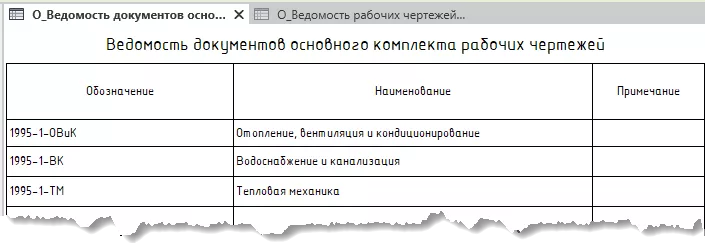 Ведомость документов основного комплекта рабочих чертежей создается на основе спецификации «О_Ведомость документов основного комплекта рабочих чертежей», которая представляет собой спецификацию, заполняемую вручную, Рис. 46 - Ведомость комплектов чертежей.