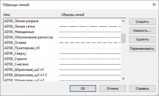 Прочие Образцы линий делятся на Пунктирные, штриховые и штрихпунктирные. Их настройка отображается в названии, например: «ADSK_Штриховая_ш2 п1» - это штриховая линия с длиной штриха 2 мм и длиной пространства 1 мм.