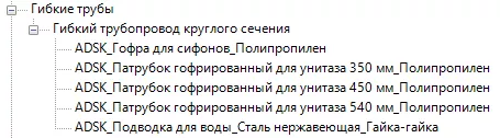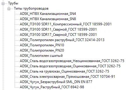 Для каждого типа трубопровода загружен минимально необходимый список пользовательских семейств для автоматической трассировки.