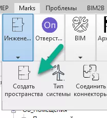 Для создания пространств воспользуйтесь плагином «Создать пространства», он полностью продублирует помещения из архитектурных файлов, в том числе значения параметров, привязки, высоту помещения, Рис. 110 - Создать пространства, Рис. 111 - Диалоговое окно создать пространства. Плагином BIM2B для создания пространств пользоваться не рекомендуется в связи с нестабильностью данного плагина.