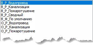 Шаблоны «В_Р_Водопровод» … «В_Р_Пожаротушение» применяются для вспомогательных разрезов конкретного раздела проекта.