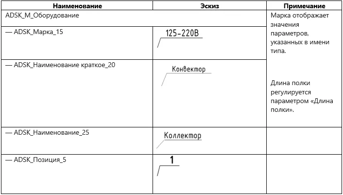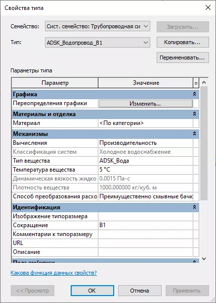 Данная категория элементов заполняется на основании значений общих параметров, содержащихся в семействах или каталогах типоразмеров.