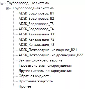 Сокращения для трубопроводных систем используется для автоматического задания начального именования создаваемой трубопроводной системы, так же сокращения трубопроводных систем используются в фильтрах. При необходимости можно создать свою трубопроводную систему путем копирования от необходимой классификации, но для корректной работы в настроенных шаблонах вида может потребоваться создание/редактирование существующих фильтров.