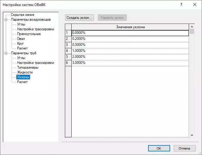 Настроены типовые значения уклона для трубопроводов, Рис. 85 - Типовые значения уклонов.