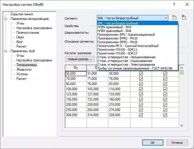 Настроены сегменты труб различных материалов, Рис. 84 - Настройка материалов труб.