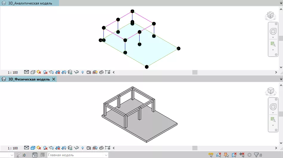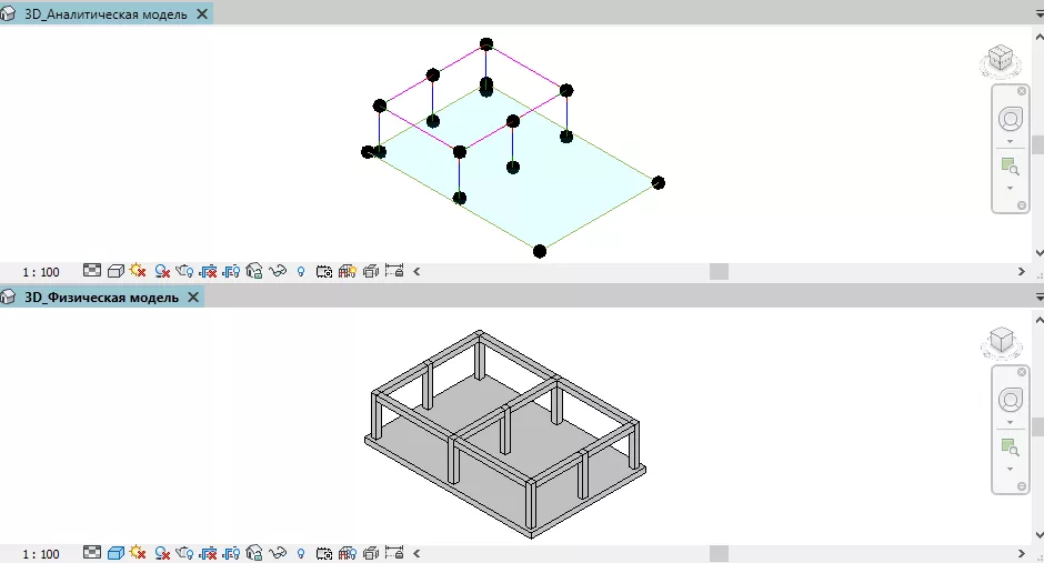 При построении физической модели Revit параллельно формирует аналитическую модель.