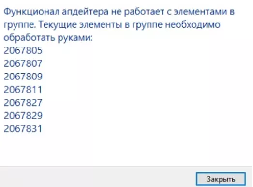 1. Функционал апдейтера не работает с элементами в группе. Текущие элементы в группе необходимо обработать руками.