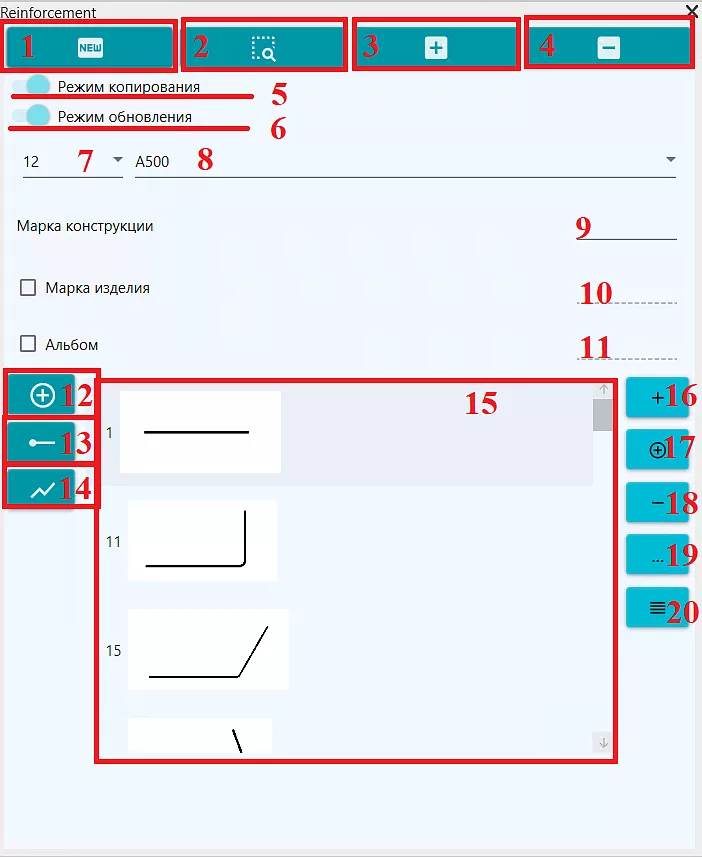 4. Выбираем из списка 15 форму арматурного стержня которую хотим поставить.