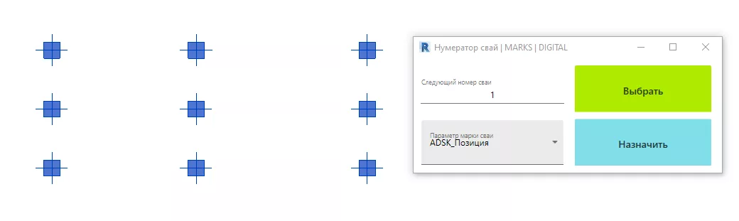 Плагин предназначен для автоматического заполнения сваям параметра ADSK_Позиция – номера свай на схеме свайного поля.