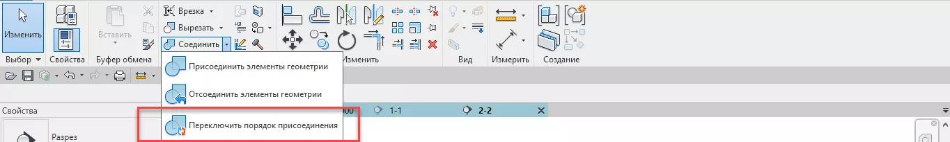 Принцип работы инструмента основан на стандартном функционале Revit «Переключить порядок присоединения».