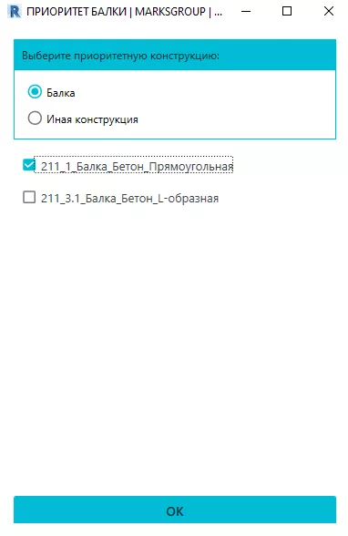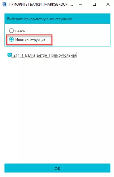 Рис. 8. Выбор семейства балок и конструкций, для которых требуется изменить приоритет