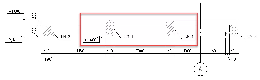 Рис. 7. Балка БМ-1 главная по отношению к колонне К-1