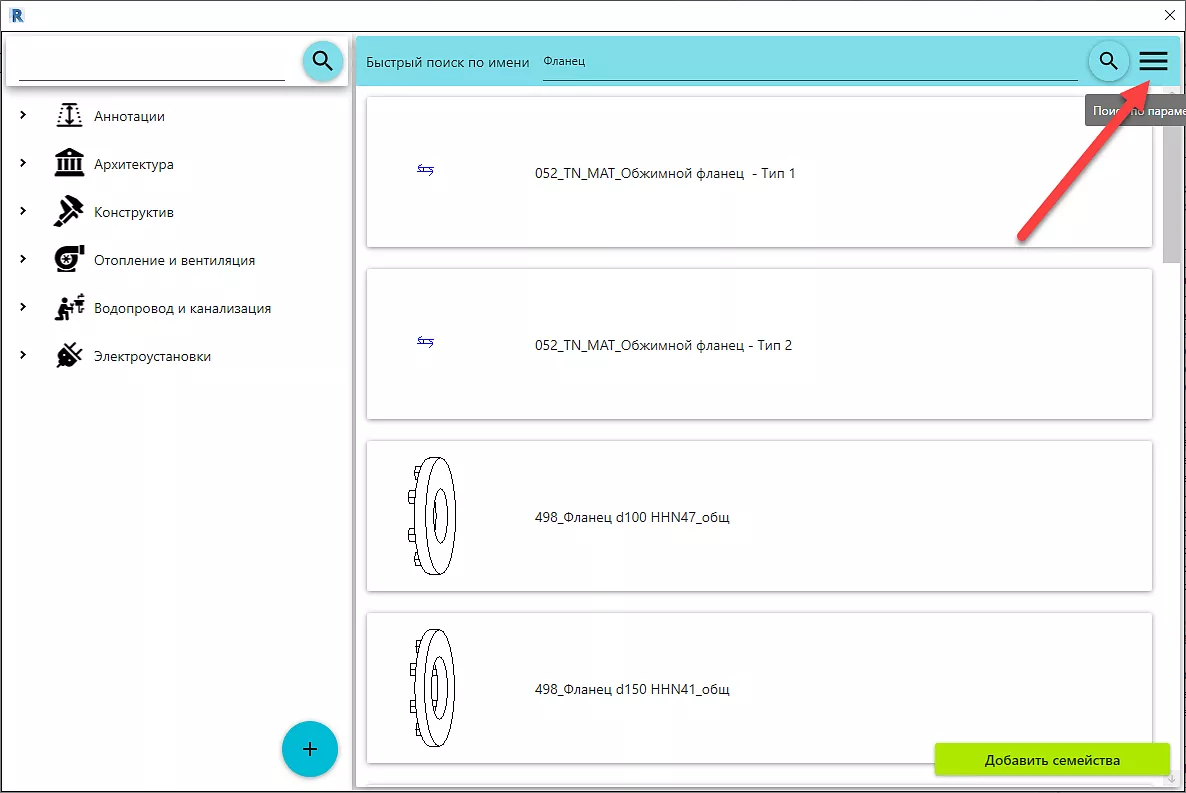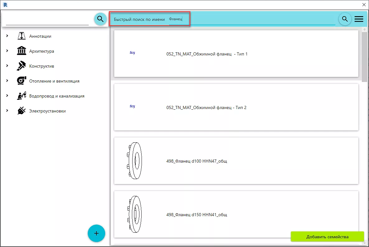 Для быстрого поиска введите подходящее под описание семейства слово, нажмите Enter или на значок лупы справа сверху, Рис. 7 - Быстрый поиск.