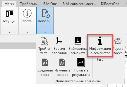 Чтобы посмотреть инструкцию для семейства, перейдите во вкладку Marks, затем выберите Дополнительные элементы – Информация о семействе, Рис. 1 - Информация о семействе. Нажмите данную кнопку, а затем кликните по размещенному в проекте семейству, инструкция будет открыта автоматически, Рис. 2 - Выбор семейства.