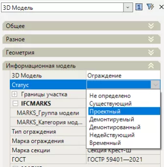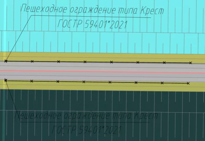 - Каждый участок пешеходного ограждения должен находится в определенном слое в зависимости от своего статуса (Проектируемый, существующий,