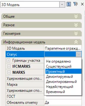 - Каждый участок парапетного ограждения должен находится в определенном слое в зависимости от своего статуса (Проектируемый, существующий, демонтируемый и т.д.);